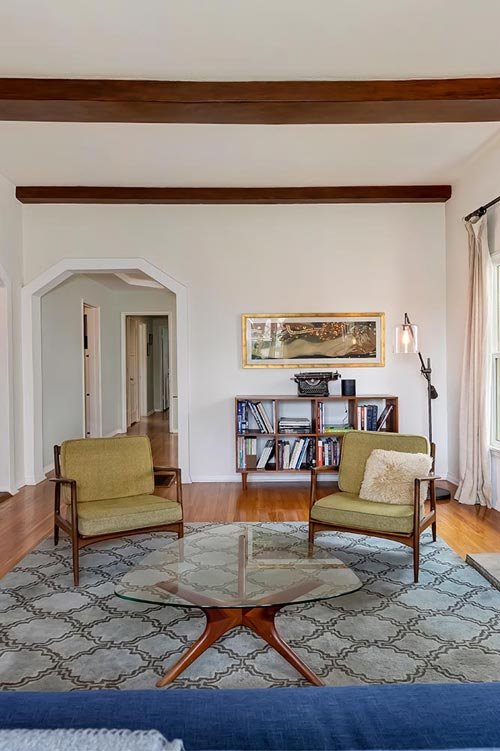 This lovingly preserved 1935 Spanish style home in sought-after Leimert Park is move-in ready. Meticulously maintained, this two-bedroom, 1.5-bathroom home is full of appealing period details including original tiled bathroom and kitchen, stone fireplace and beamed ceiling in the living room, tray ceiling in the dining room, hardwood floors throughout much of the house, and more. Unexpected extras include a laundry room, a breakfast room (currently used as a home office), and a dressing area off of the primary bedroom. Outside you’ll find a porte cochère and covered courtyard in the front, plus a detached two-car garage on the side, and beautiful, drought-tolerant, irrigated landscaping in the front and backyards. The magical backyard is ideal for outdoor entertaining. Guests can relax on the deck and dine under the wisteria-draped pergola. Recently upgraded electrical. Conveniently located close to downtown LA, Metro rail, shops and dining. Don’t miss it.